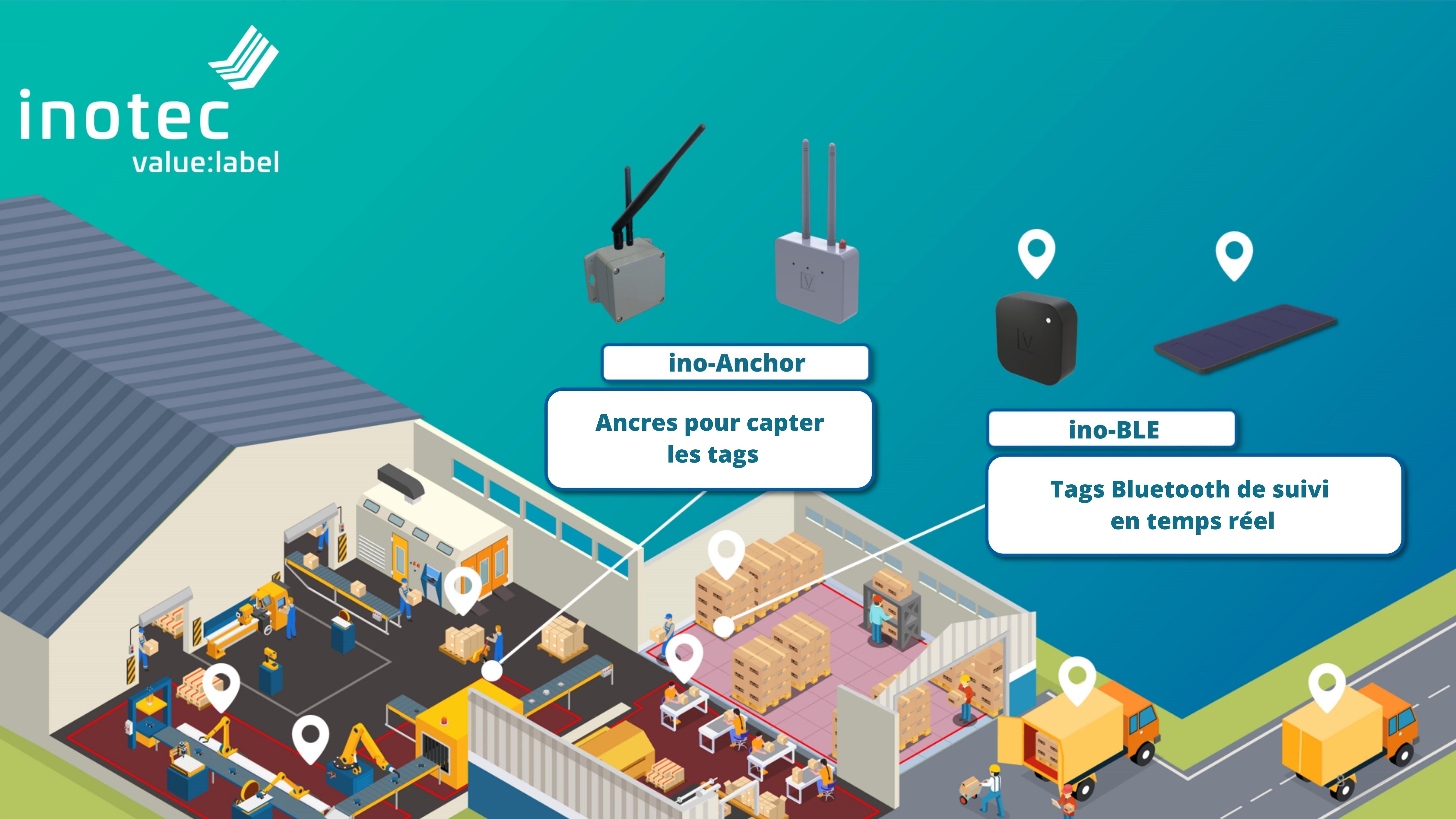 La nuovissima soluzione ino-Lock, proposto da inotec, è composto da tag a radiofrequenza « ino-BLE » basato su tecnologia Bluetooth Low Energy (BLE) e antenne wireless ino-Ancora chiamato "ancore" per rilevare tutti i tag presenti in un'area dedicata. La scelta del Bluetooth Low Energy (BLE) consente di offrire un sistema di geolocalizzazione indoor semplice, preciso e affidabile.